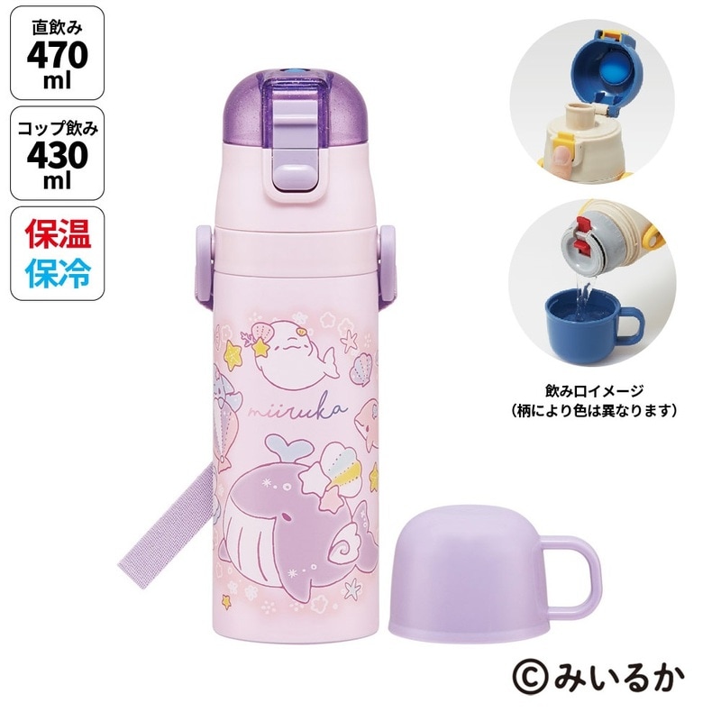 超軽量 直飲み コップ飲み兼用 2WAYステンレスボトル 470ml/430ml みいるか/SKDC4_4973307703805