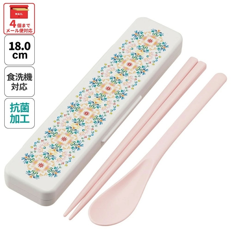 抗菌音が鳴らないコンビセット(箸・スプーン) 箸18cm 天平文様(夢幻)薄紅/CCS3SAAG_4973307649806