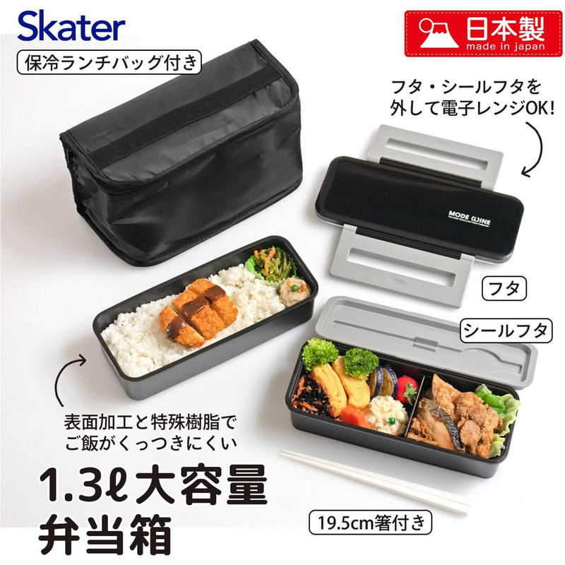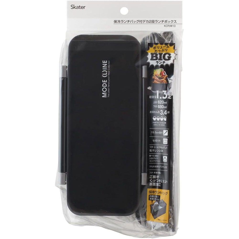 デカ2段ランチボックス●モードライン ブラック●//お弁当箱 メンズランチ 男性用 男の子 食べ盛り 大きい 大容量 メンズ弁当箱 箸付き 通勤 通学 塾弁 部活 成長期 スポーツ 青春 保冷ランチバッグ付き// スケーター