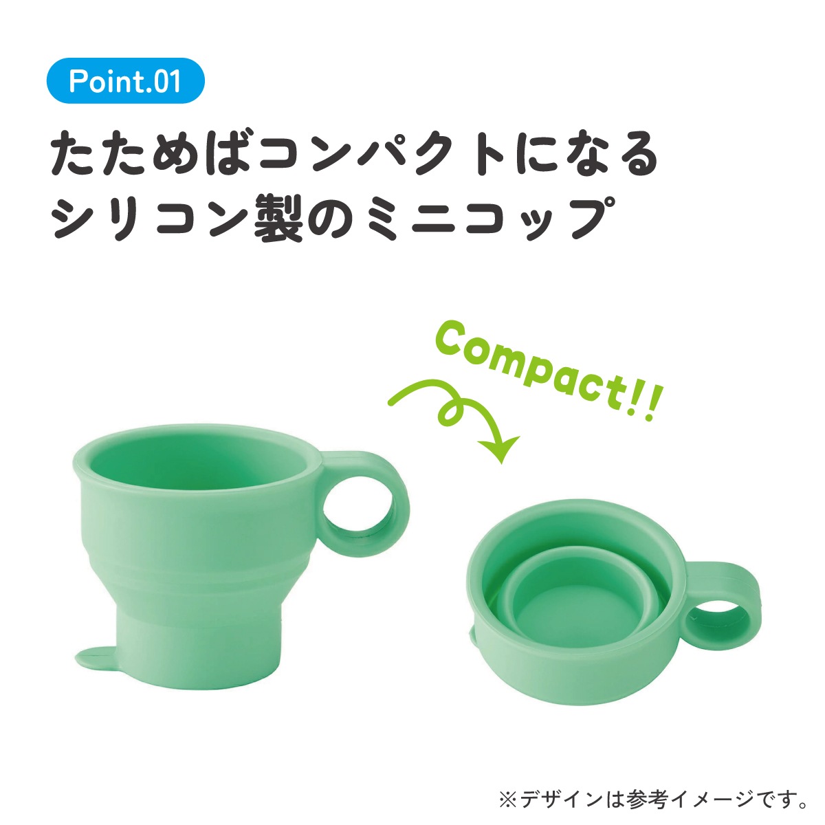 シリコーン製携帯ミニコップ[120ml]【ミントグリーン】//折りたたみ シリコン 専用ケース付き 外出 おでかけ うがい 歯みがき はみがき 服薬 薬 便利 たためるミニコップ パステルグリーン// スケーター
