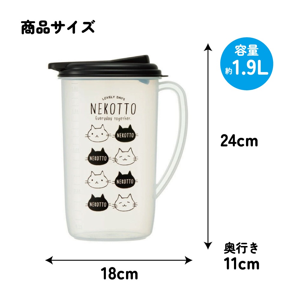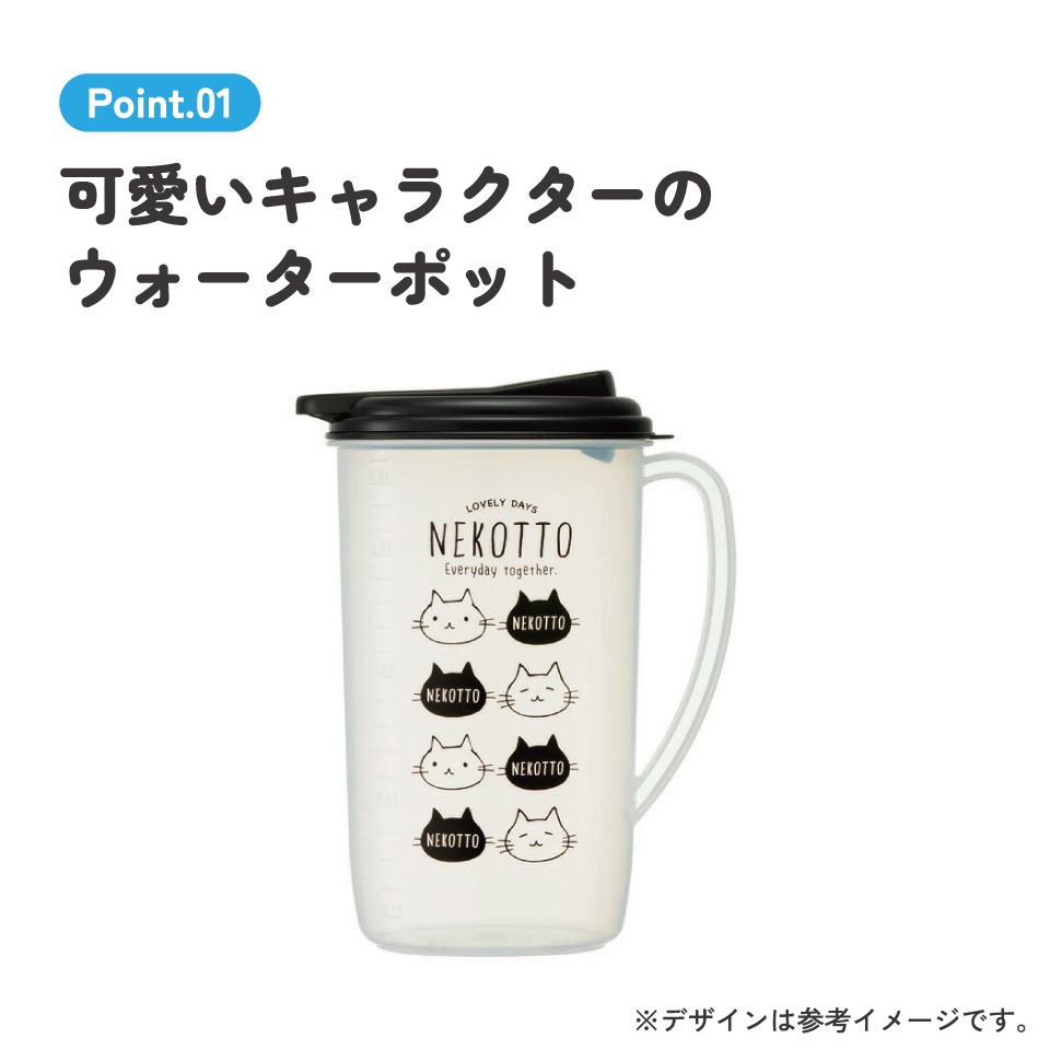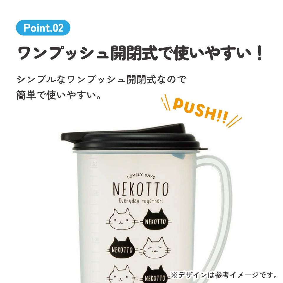 プラスチック 冷水筒 ピッチャー ハンドル付き ワンプッシュ開閉式 目盛付き ねこっと ネコ柄 猫柄 女の子 女子 レディース