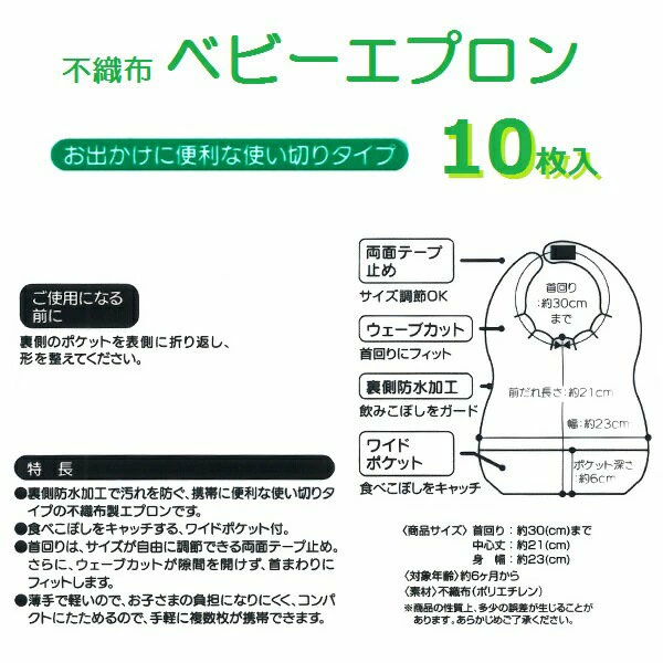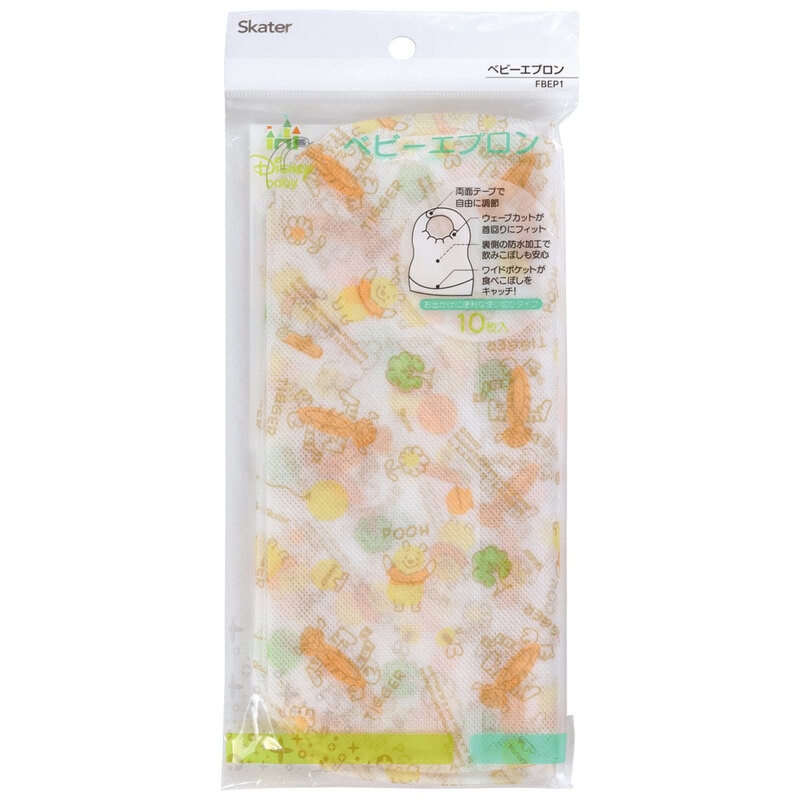 【メール便対象品】 スケーター 不織布ベビーエプロン[10枚入]●くまのプーさん●//ベビー用品 ベビーグッズ 食事 ごはん 食べこぼし 汚れ防止 携帯 お出かけ 薄手 使い捨て 軽量 ディズニー//