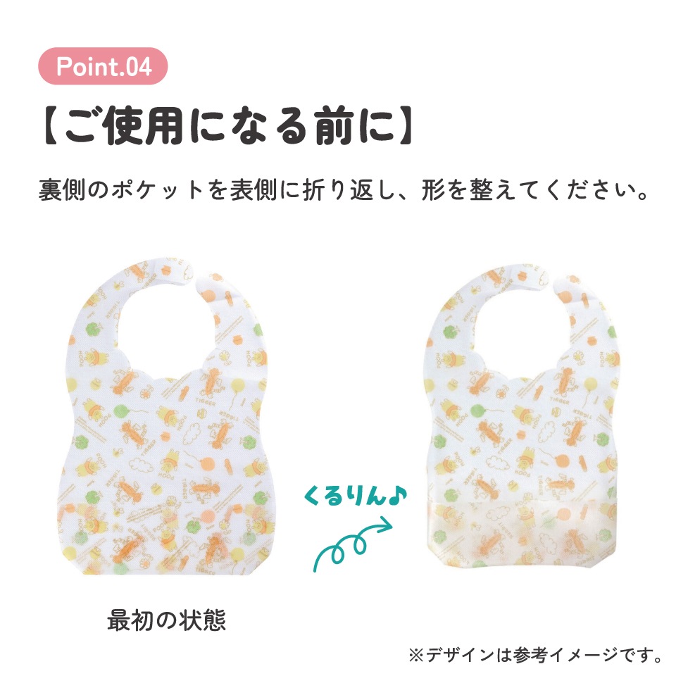 食べこぼしをキャッチするワイドポケット。