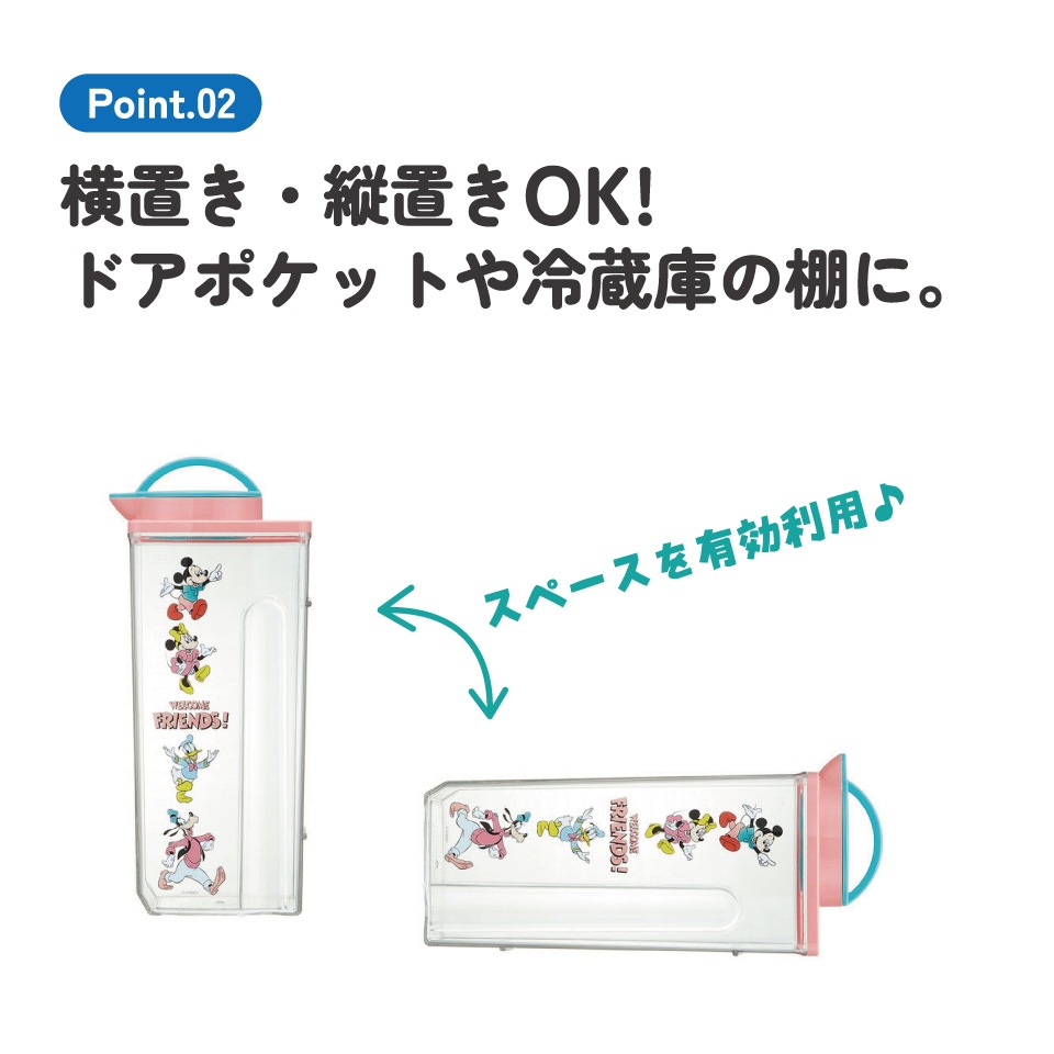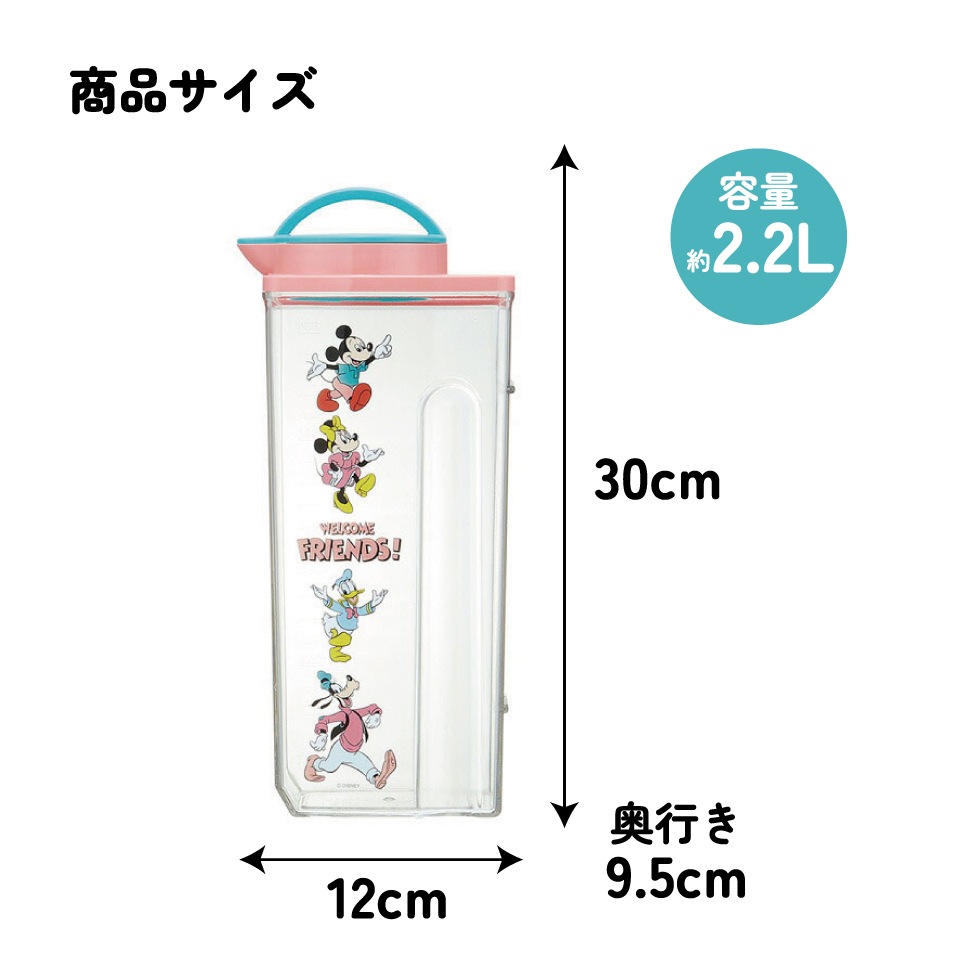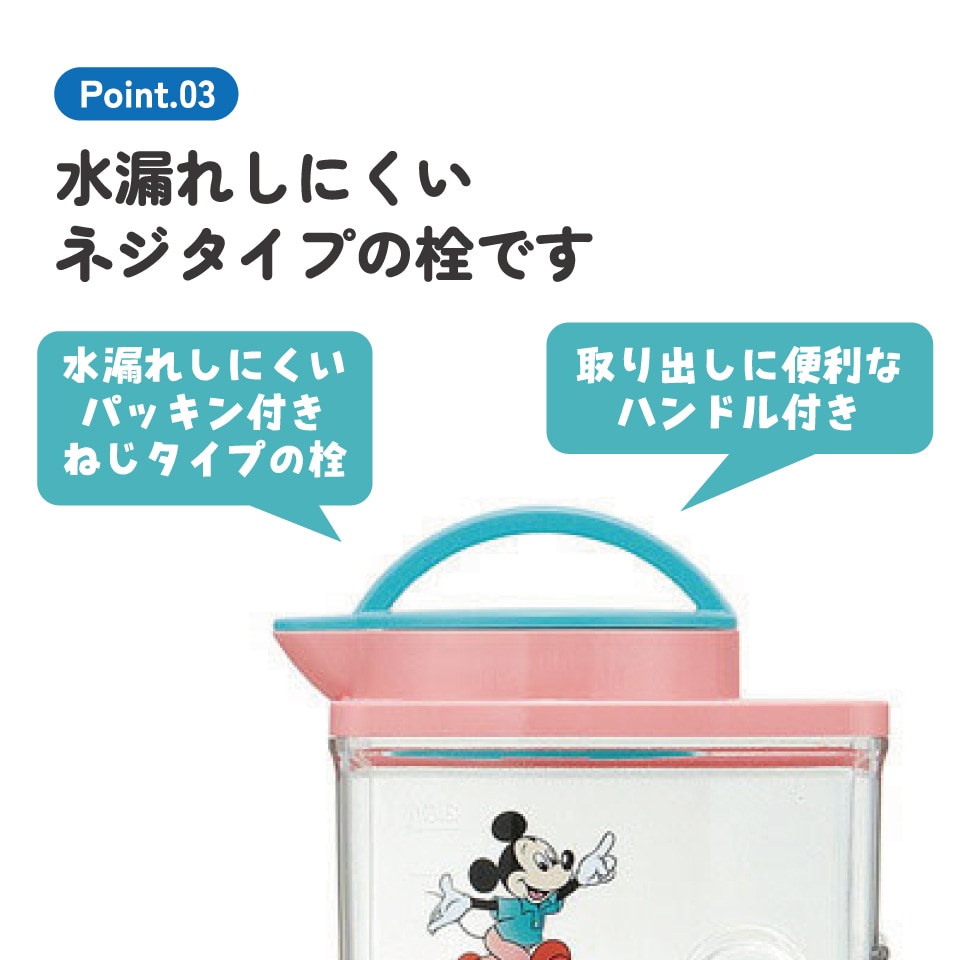 プラスチック 冷水筒 ピッチャー ハンドル付き パッキン付き ネジタイプ栓 目盛付き 横置き可 ミッキーマウス ミッキー Mickey 男の子 女の子