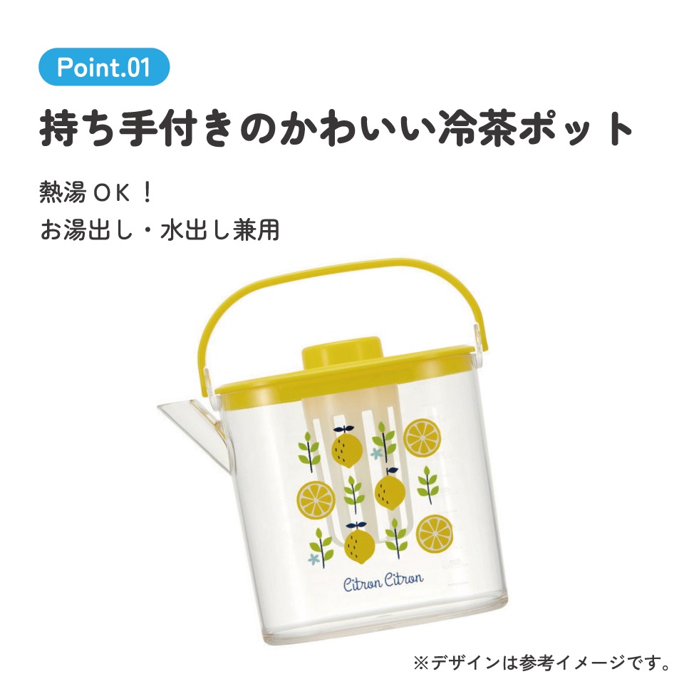 ティーバッグ用茶こし付 冷茶ポット[1.2L]●レモン●//冷水筒 ウォーターポット ピッチャー 常備保存用ポット 水分補給 持ち手付き 洗いやすい 熱湯OK// スケーター