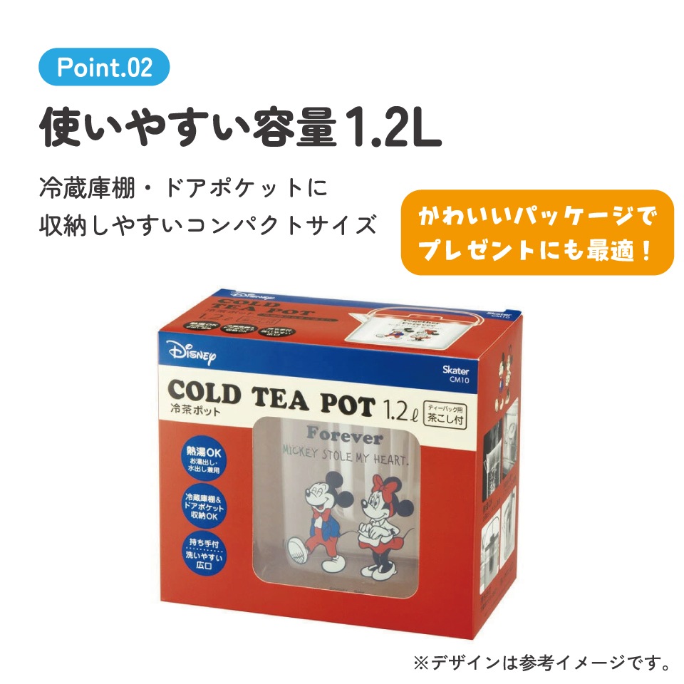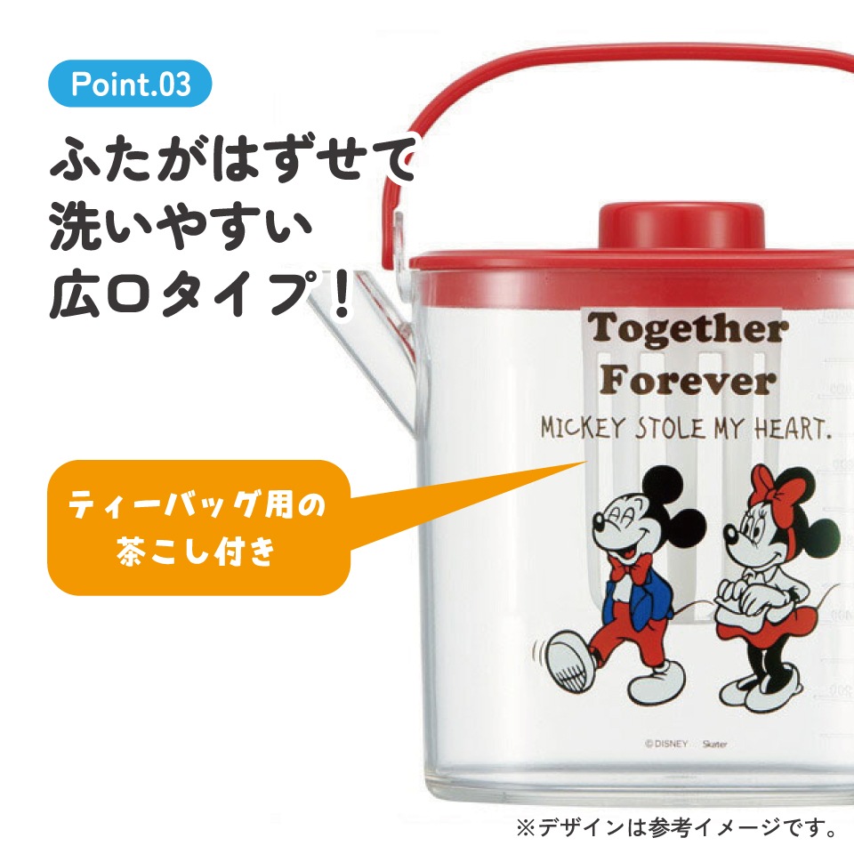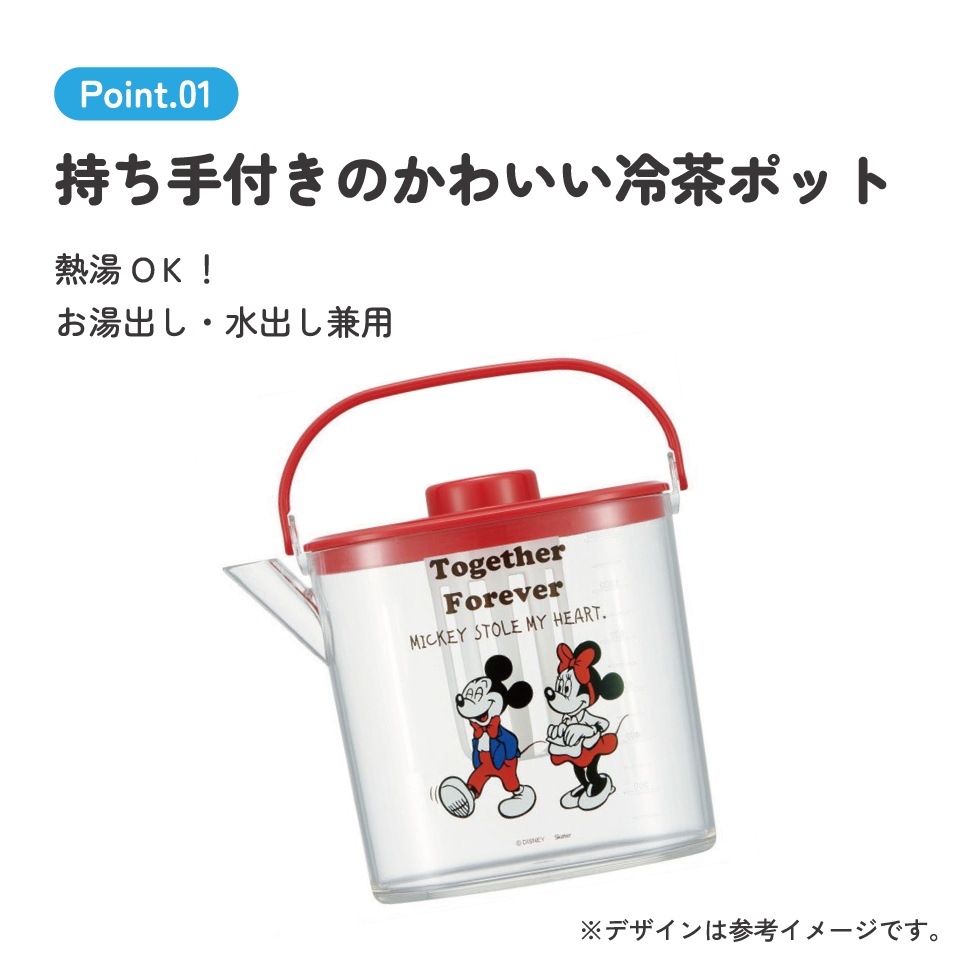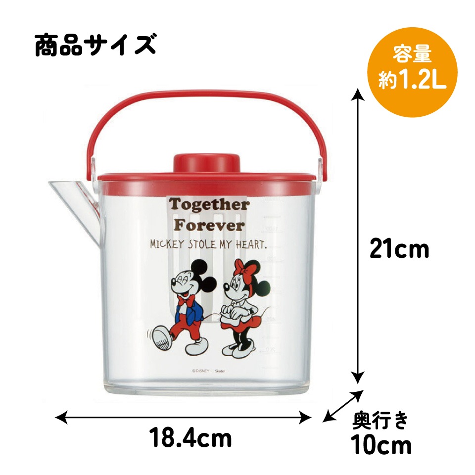 ティーバッグ用茶こし付 冷茶ポット[1.2L]●ミッキー&ミニー●//冷水筒 ウォーターポット ピッチャー 常備保存用ポット 水分補給 持ち手付き 洗いやすい 熱湯OK ディズニー Disney ミッキー&フレンズ コミック// スケーター