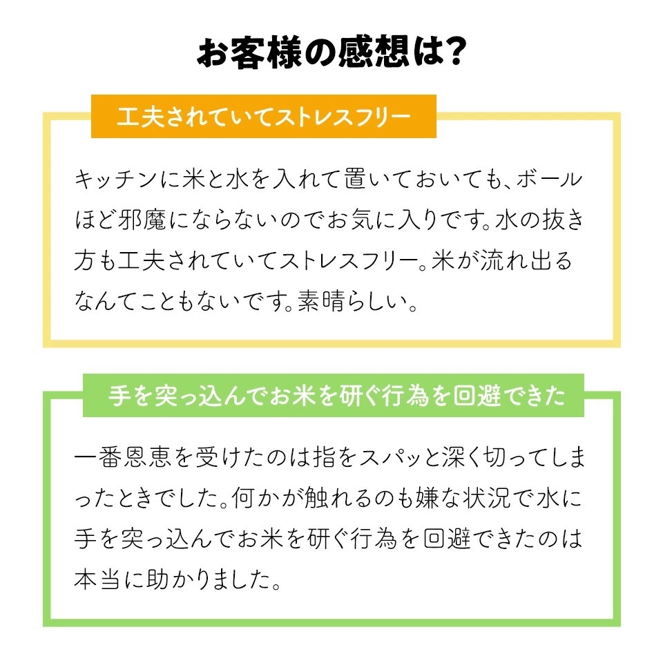 指を怪我している時や、ネイルをしていてお米が研げない場合、冬の寒い時期に水でお米を洗いたくない時にオススメ♪