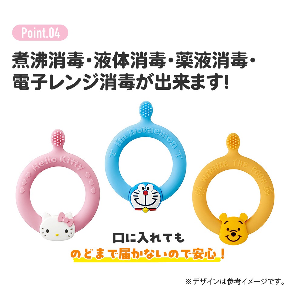 歯が生え始めたころのお子様にやわらかいシリコーンで歯茎をやさしく刺激。
