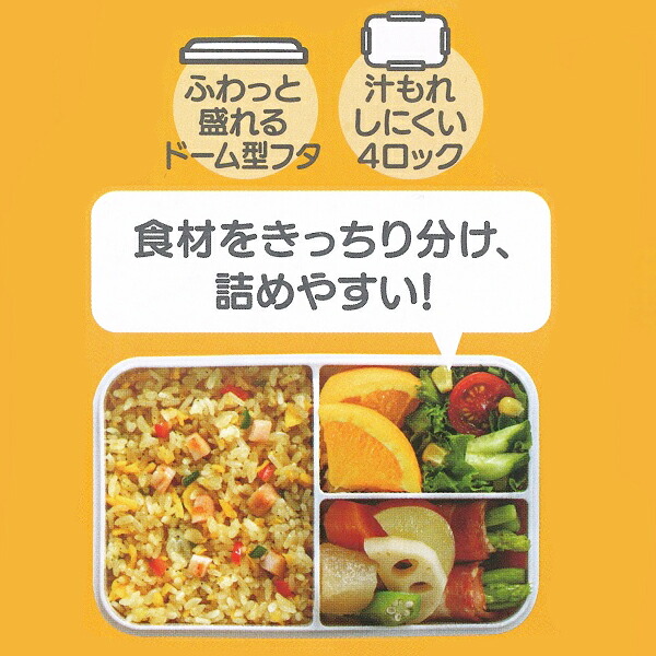 パッキン取り外し不要!ドーム型のフタで、"ふんわり"とご飯やおかずが詰められる!