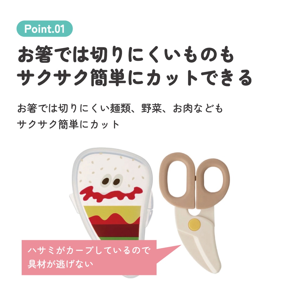 ハサミがカーブしているので、具材が逃げない!