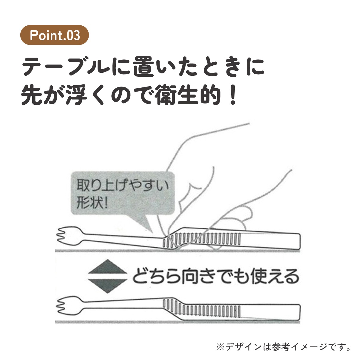 ・テーブルに置いたときに先が浮くので衛生的。
