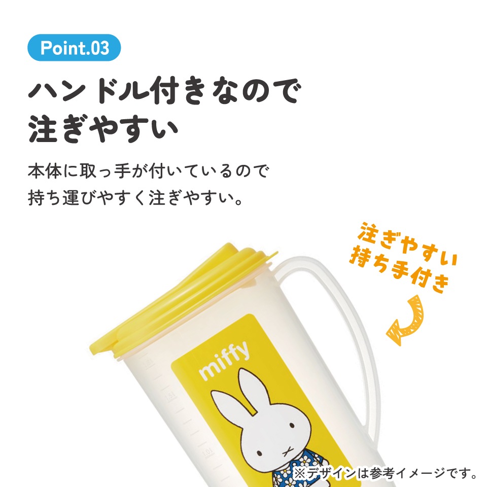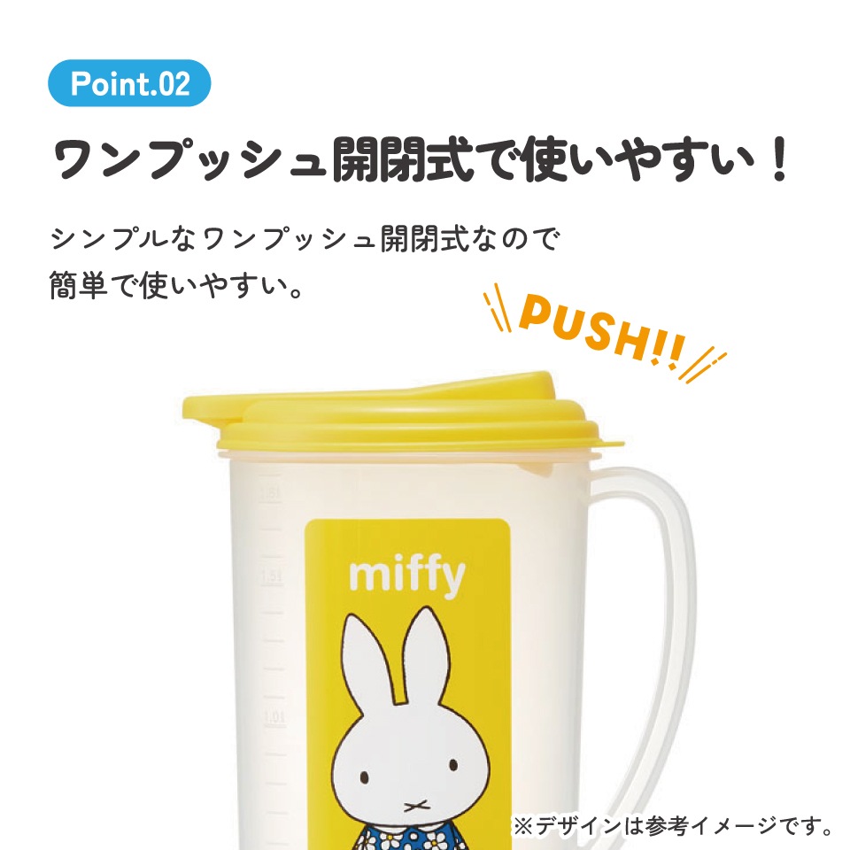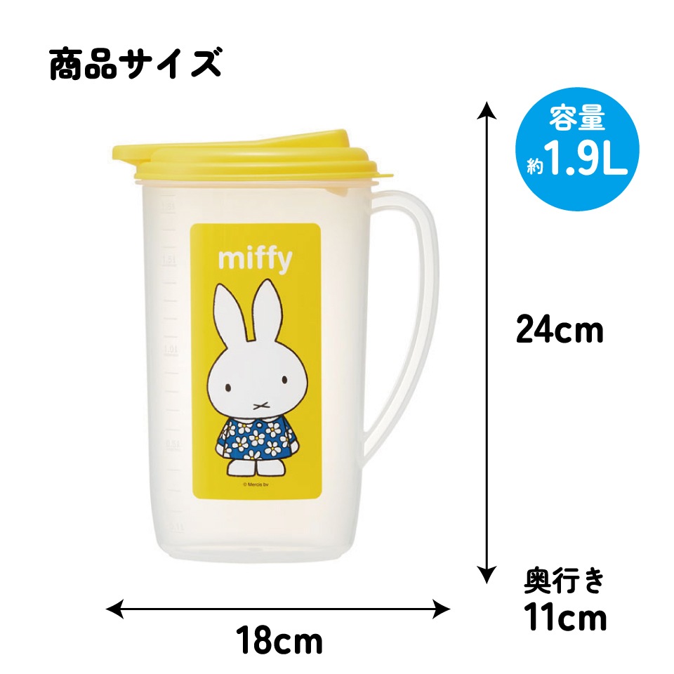 プラスチック 冷水筒 ピッチャー ハンドル付き ワンプッシュ開閉式 目盛付き ミッフィー Miffy うさこちゃん 女の子 女性