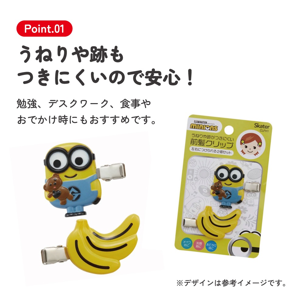 【メール便対象品】 前髪クリップ キャラクター 跡がつかない ヘアクリップ 赤ちゃん 前髪 髪留め 子供 スケーター CLFH1【2個入り メイク ベビー かわいい ギフト プチギフト プレゼントミニオンズ ミニオン minion 男の子 女の子】