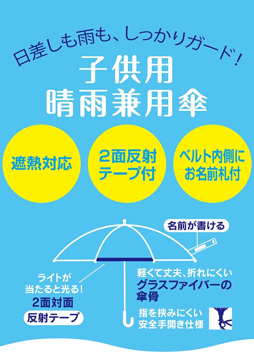 日差しも雨も、しっかりガード!子供用晴雨兼用傘。
