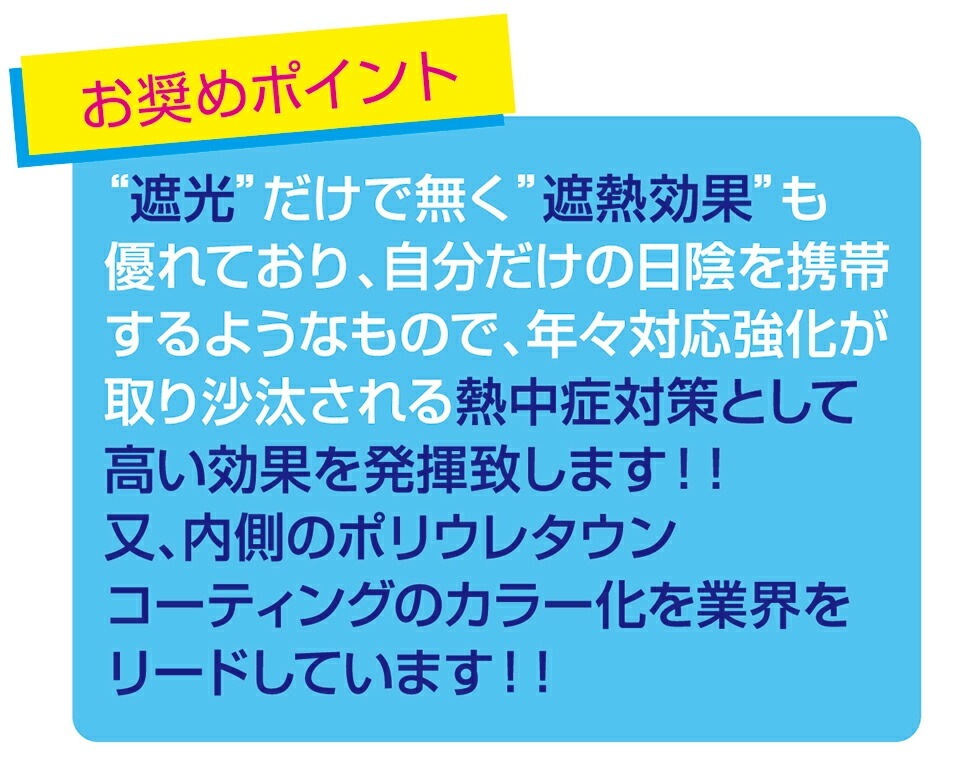遮熱率35%以上なので、外出先でひかげを持ち歩くイメージです!