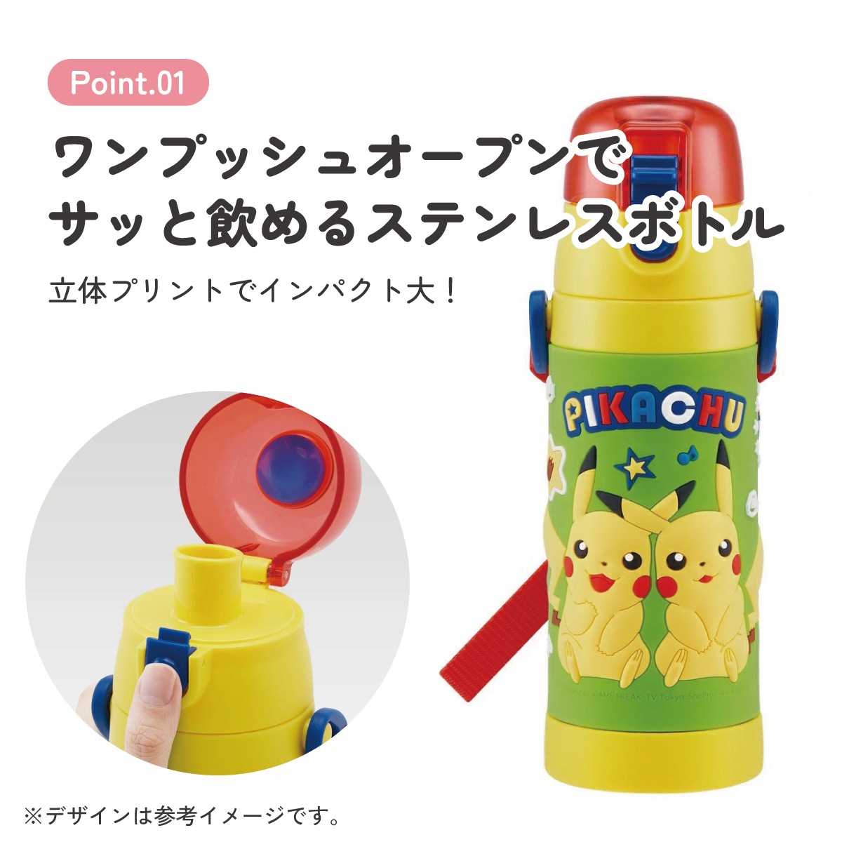 21年柄 3D ダイレクト ステンレス ボトル 通園 通学 お出かけ 運動会 遠足 行楽 ピクニック 立体 かわいい キャラクター ポケモン ポケットモンスター