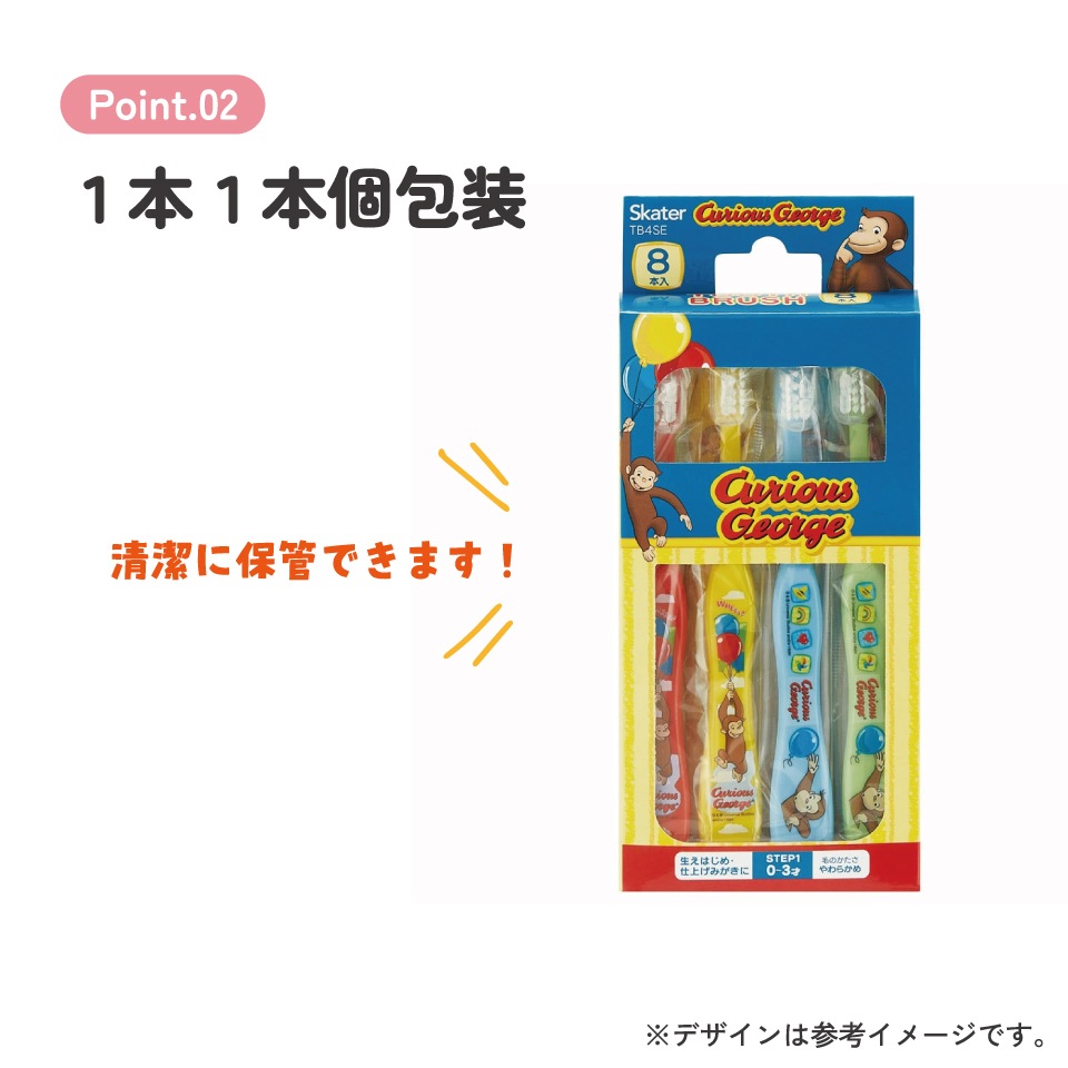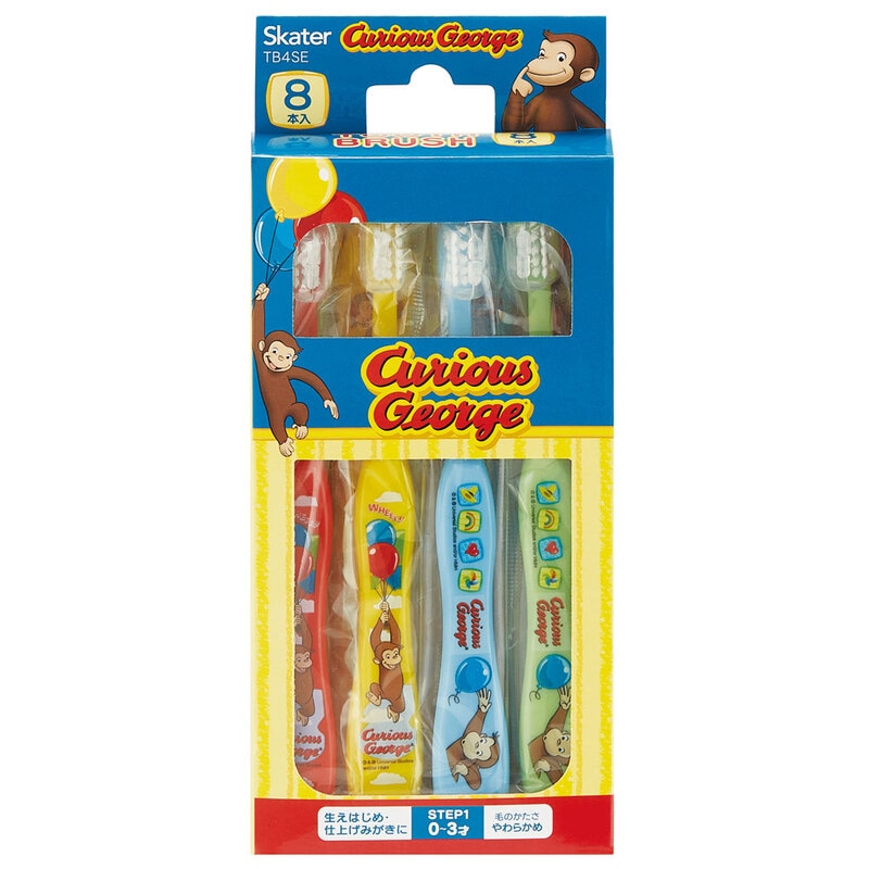 【メール便対象品】 歯ブラシ 乳児 用 子供 セット まとめ買い 8本 子ども 歯磨き 歯ブラシセット キッズ 8P スケーター TB4SE【こども 用 歯ブラシキャップ 仕上げ 仕上げ磨き ハブラシ 幼児おさるのジョージ ひとまねこざる 男の子 女の子】