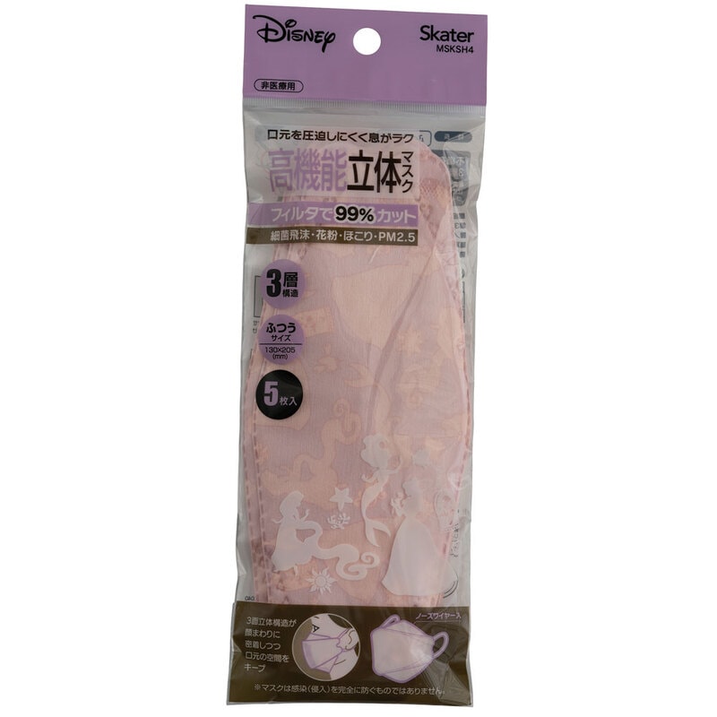【メール便対象品】 99% カット マスク 不織布 大人 用 高機能 立体 5枚入り 韓国マスク キャラクター スケーター MSKSH4【かわいい 呼吸しやすい 口につかない 口紅 口紅がつかない 立体ディズニー プリンセス シンデレラ 女の子 女子】