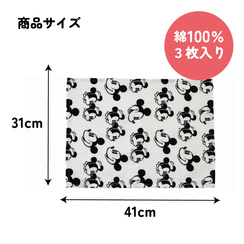 ふきん・キッチンクロス キャラクター 3枚セット ふきん 布巾 台拭き だいふきん スケーター kfwc3【食器拭き クロス フキン ワッフル生地 綿100% コットン100%ミッキーマウス ミッキー Mickey 男の子 女の子】