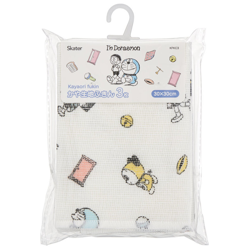 かや 生地 ふきん 3枚 セット 30×30cm ドラえもん サンリオ KFKC3 スケーター【蚊帳織 かやおり 布巾 キャラクター 台所 用品 グッズ キッチン タオル 台拭き 食器拭き 食器洗い 綿100% Sanrio Doraemon アイムドラえもん】