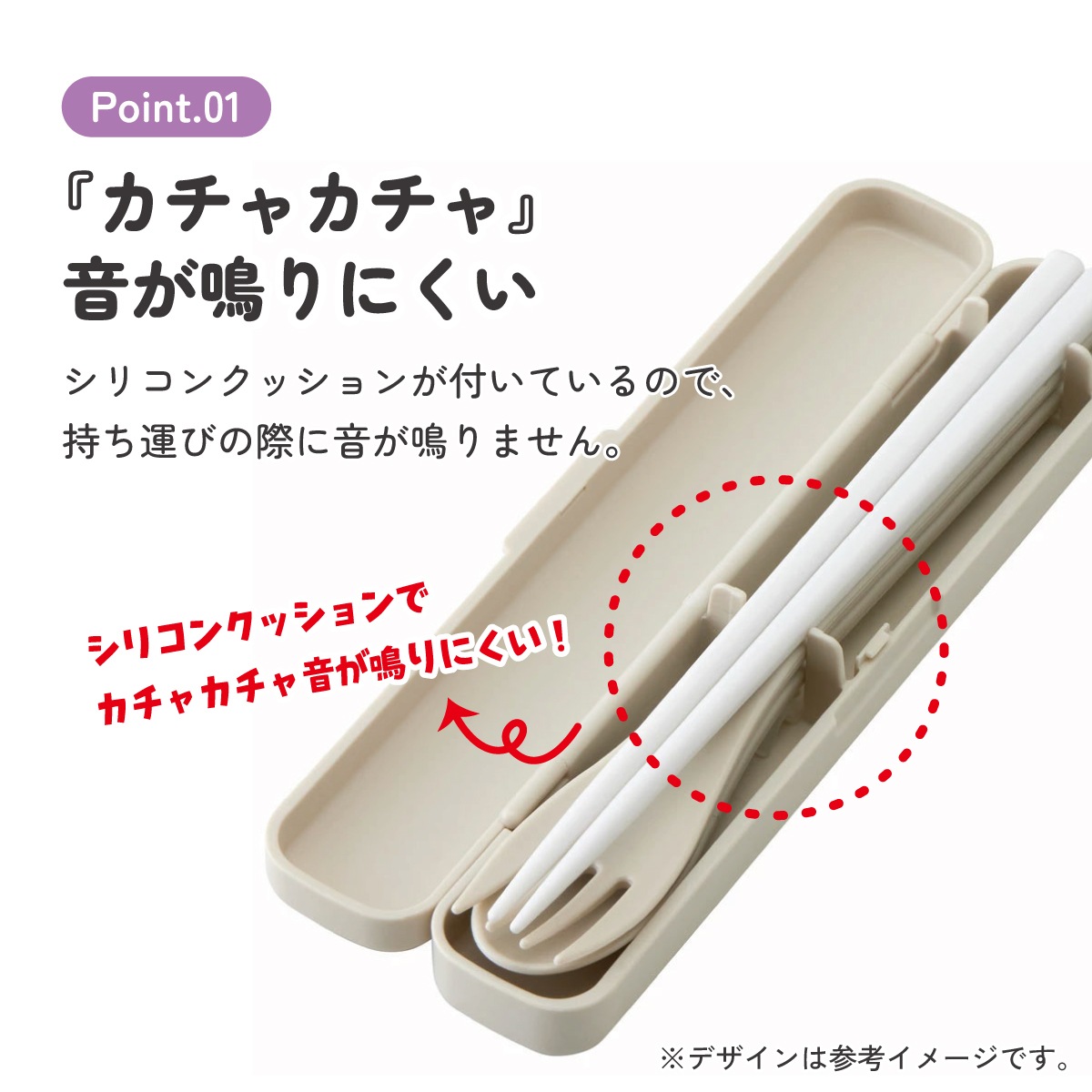 シリコーンクッションが付いているので、持ち運びの際に カチャカチャ音が鳴らない食洗機対応トリオセット!