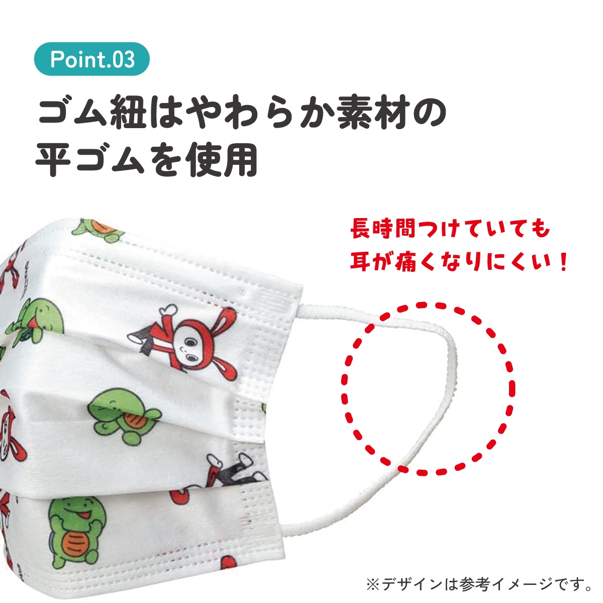 耳が痛くなりにくいやわらか素材の平ゴムを使用。