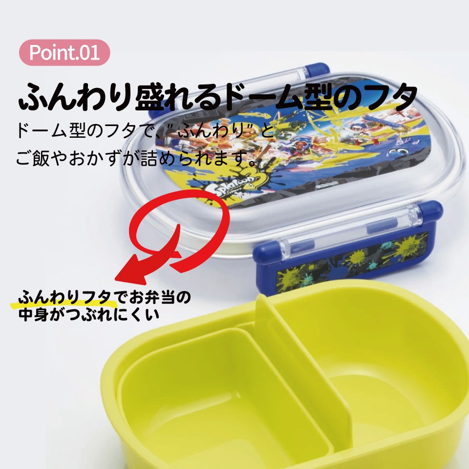 プラスチック 弁当箱 ランチボックス ドーム型フタ 仕切り 中子 パッキン 止具 名前シール付 抗菌加工 食洗機対応 電子レンジ対応 日本製 スプラトゥーン スプラ Splatoon 男の子 女の子