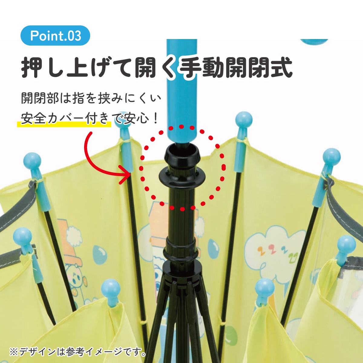 ポリエステル 雨傘 長傘 グラスファイバー骨 透明窓付き 反射テープ付き 名前スペース 手開き 手動開閉式 子供用 キッズ 対応身長約85~95cm 開閉部安全カバー付き いないいないばあっ! いないばぁ 男の子 女の子
