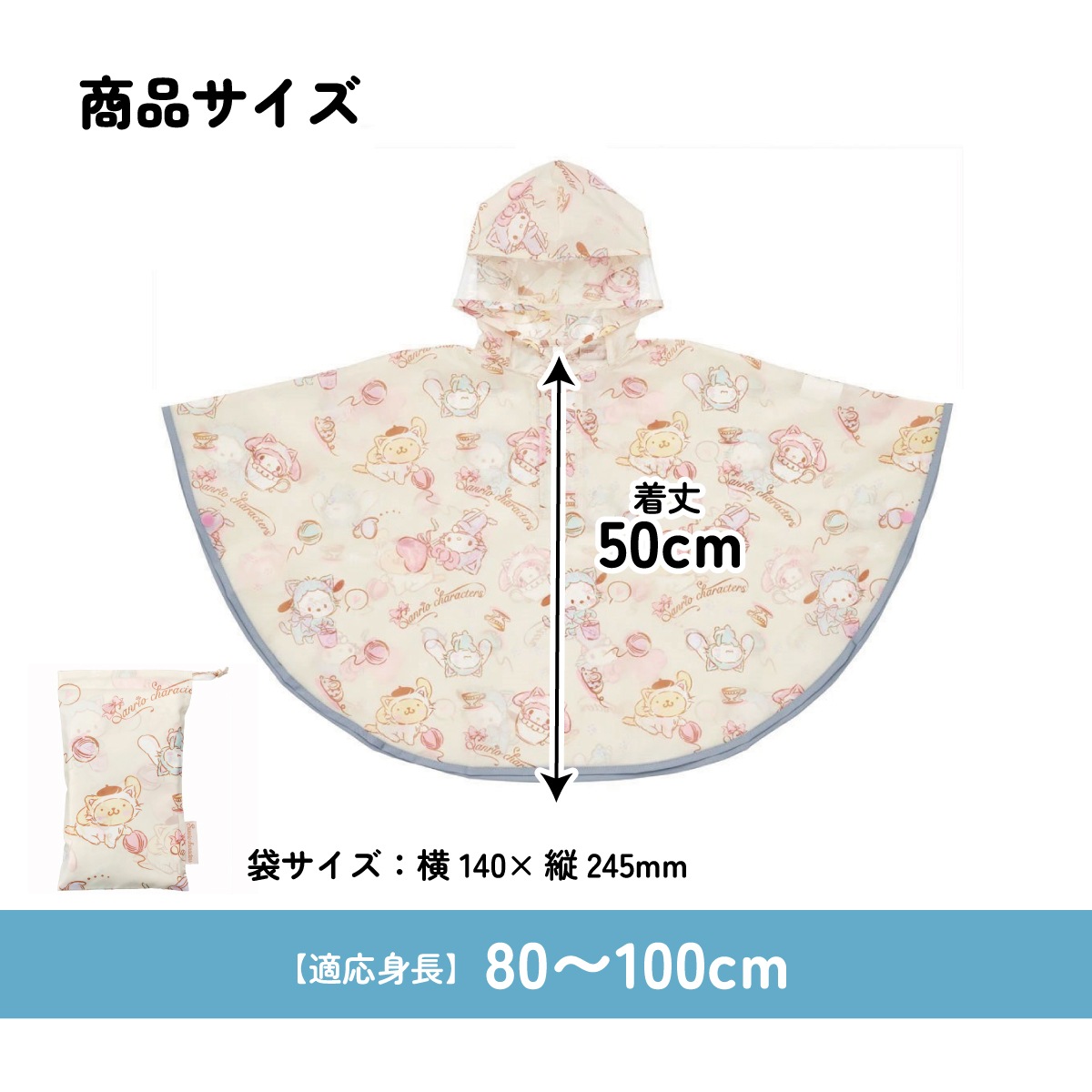 キッズレインポンチョ 身長80~100cm用 サンリオ こねこねこ/RAPO2_4973307640872