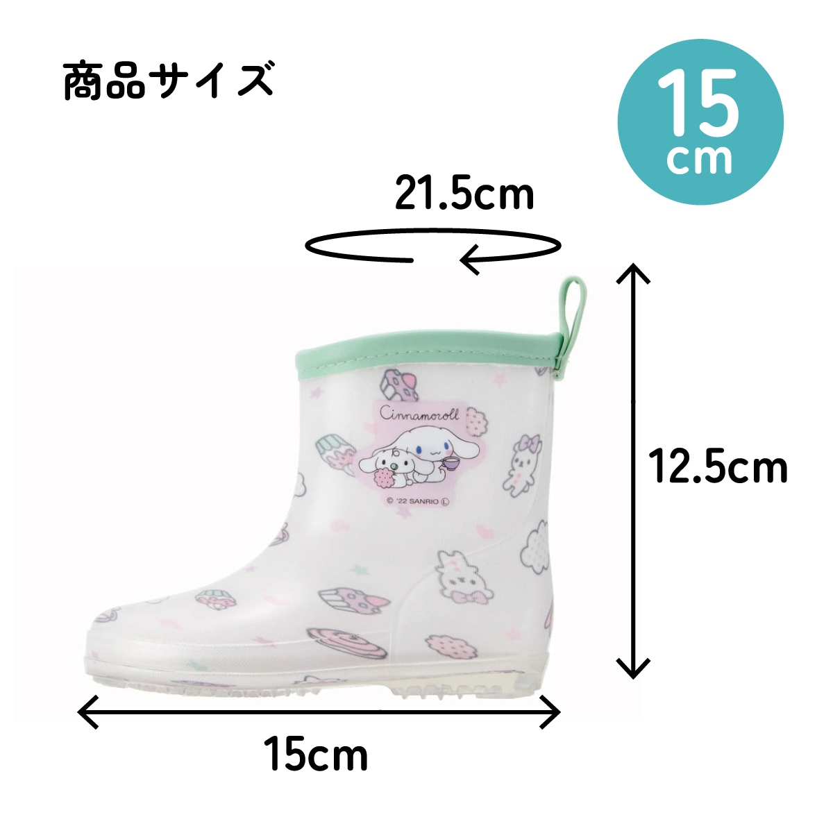 レインブーツ 15cm シナモロールみるくといっしょ/RIBT15_4973307638114