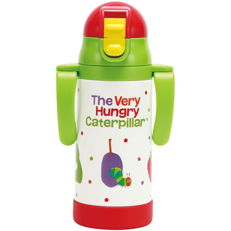 ステンレス 水筒 ボトル 真空二層構造 保冷専用 シリコンストロー 折りたためるハンドル ショルダーベルト ワンプッシュオープン ベビー 子供用 はらぺこあおむし はらぺこ 男の子 女の子 女子