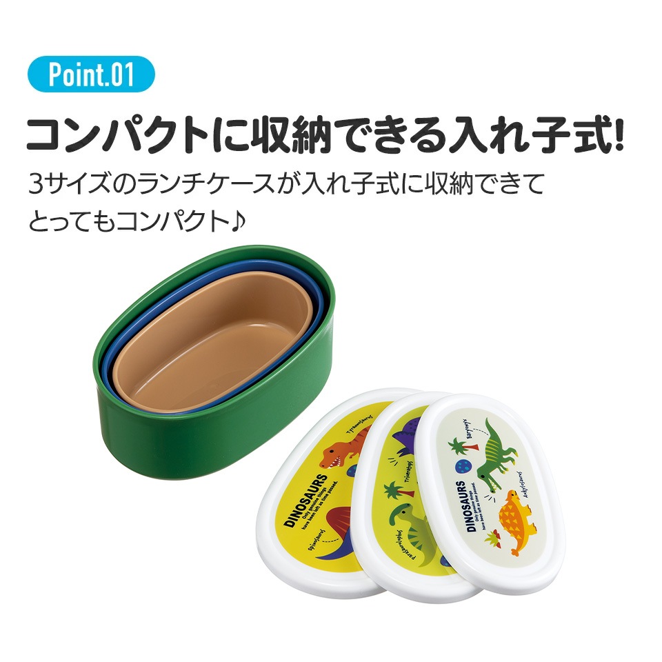 プラスチック 保存容器 入れ子式 3サイズ 400ml・280ml・180ml 抗菌加工 電子レンジ対応 日本製 ディノサウルス 恐竜 ダイナソー 男の子 男子