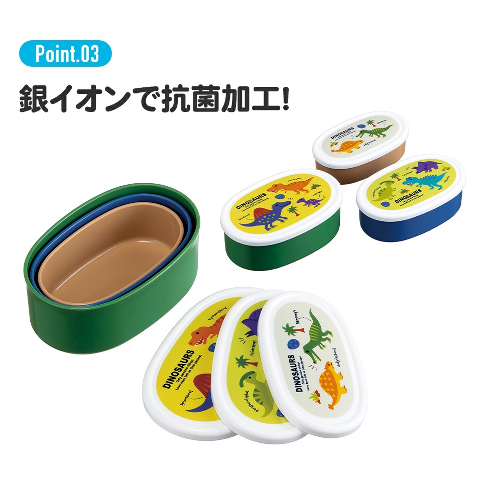 弁当箱 シール容器 抗菌 保存容器 3個セット ディノサウルス ピクチャ/SRS3SAG_4973307624407