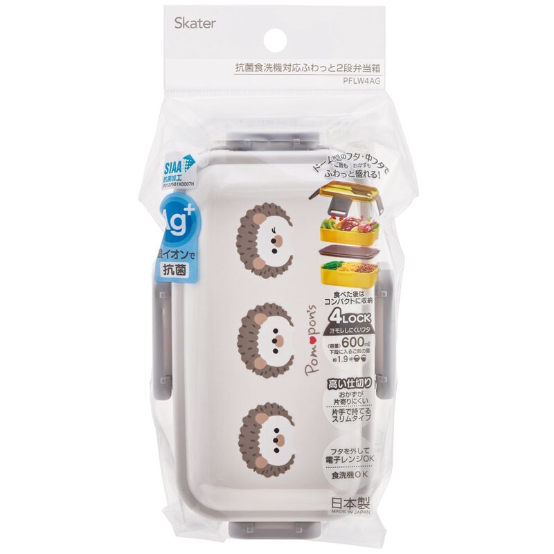 おかずがつぶれにくい抗菌ふわっとフタ弁当箱 2段/600ml Pompon’sハリネズミ/PFLW4AG_4973307606632