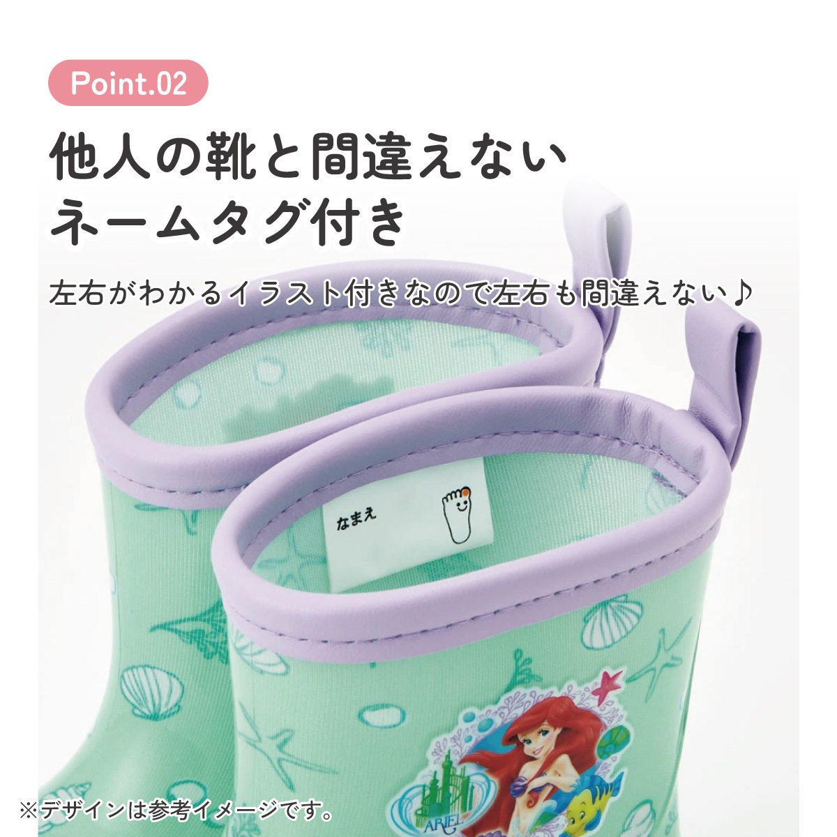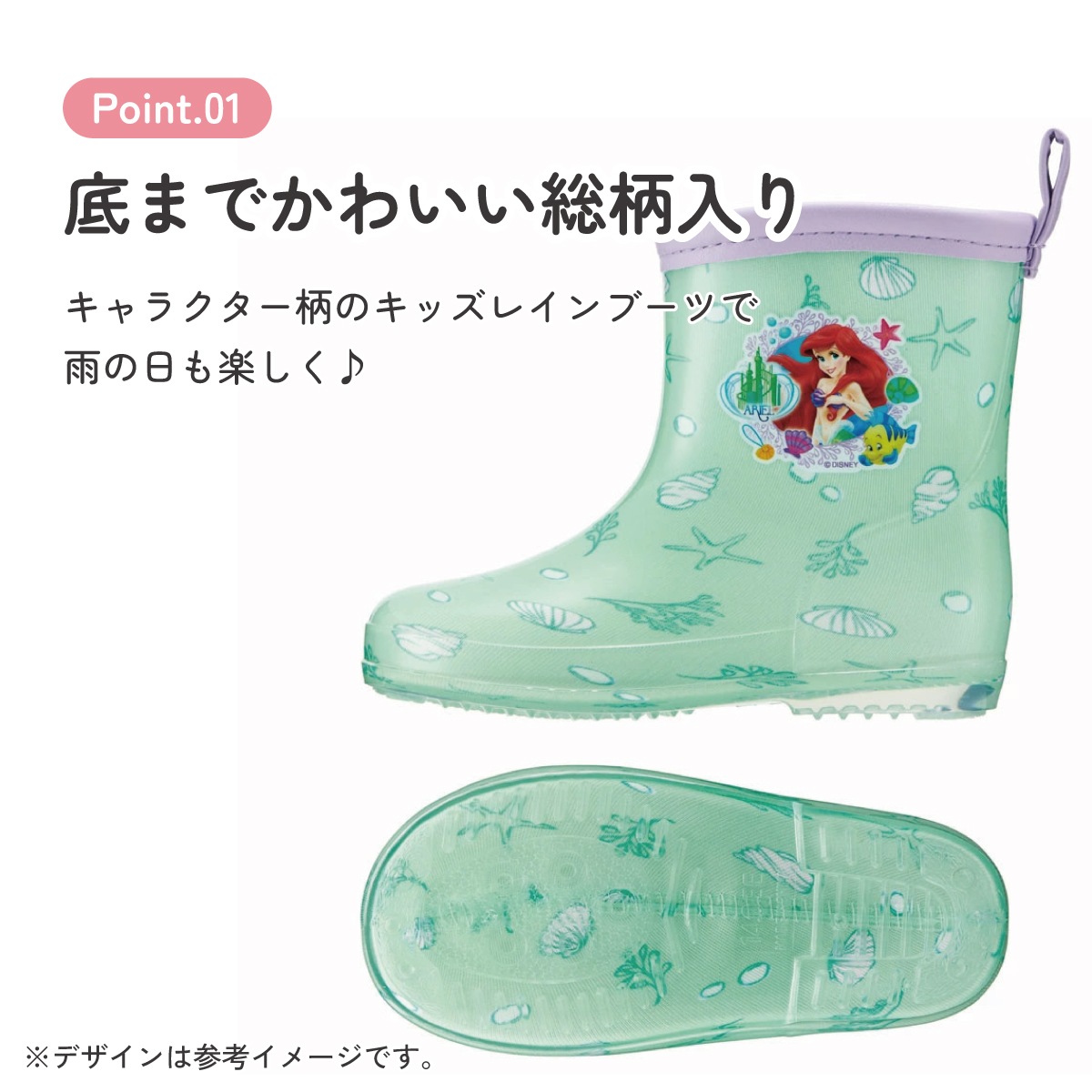 雨具 長靴 ローカット 中敷き 反射テープ付き ネームタグ付き 子供用 キッズ アリエル リトルマーメイド 女の子 レディース