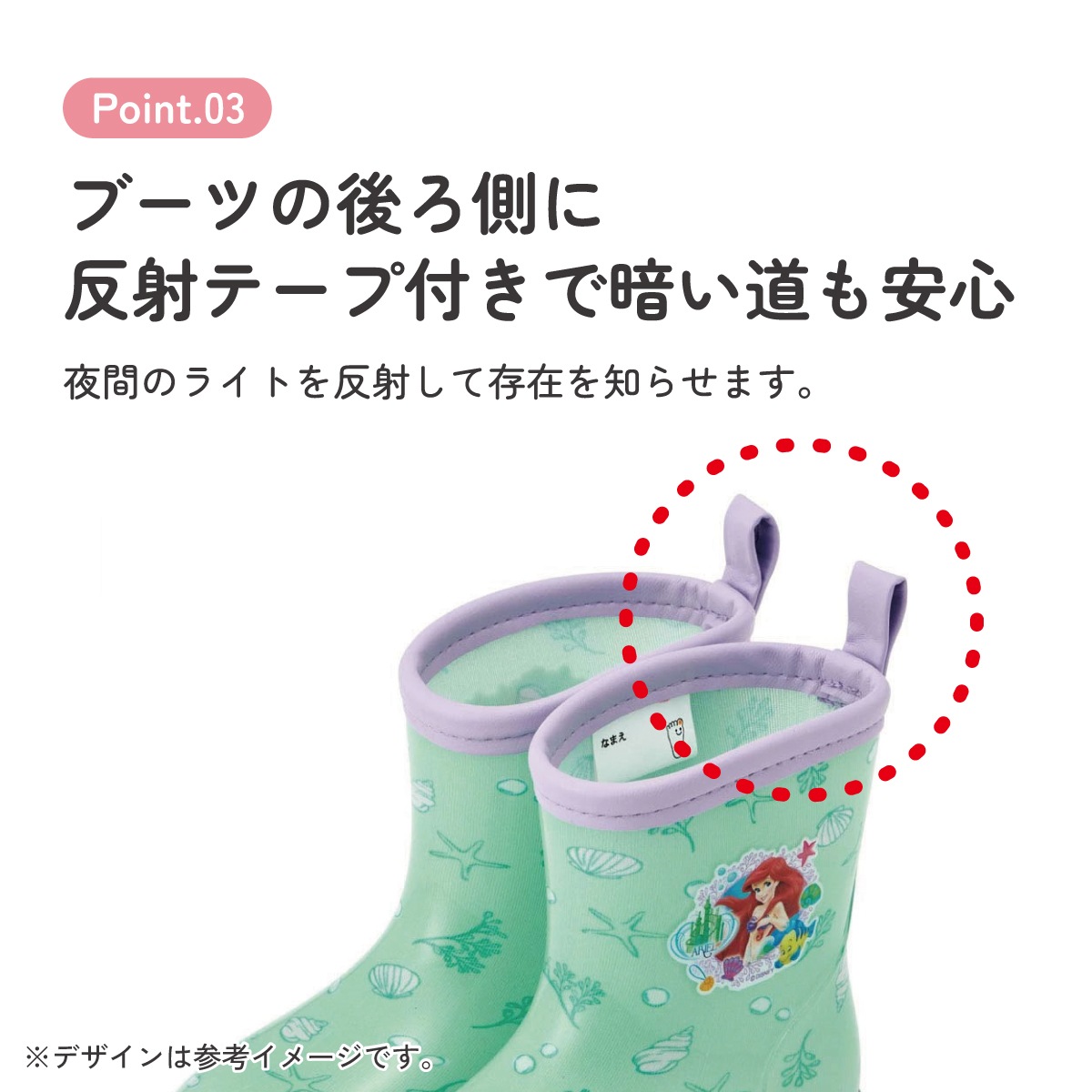 雨具 長靴 ローカット 中敷き 反射テープ付き ネームタグ付き 子供用 キッズ アリエル リトルマーメイド 女の子 レディース