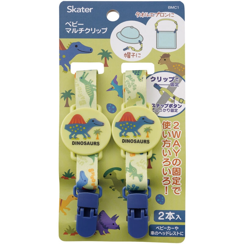 【ベビー用品】ベビーマルチクリップ[2本入り] ベビーカー チャイルドシート 車 skater スケーター BMC1 ディノサウルス 恐竜 ダイナソー 男の子 男子【お出かけ 落下防止 タオル 帽子 2WAY かわいい】