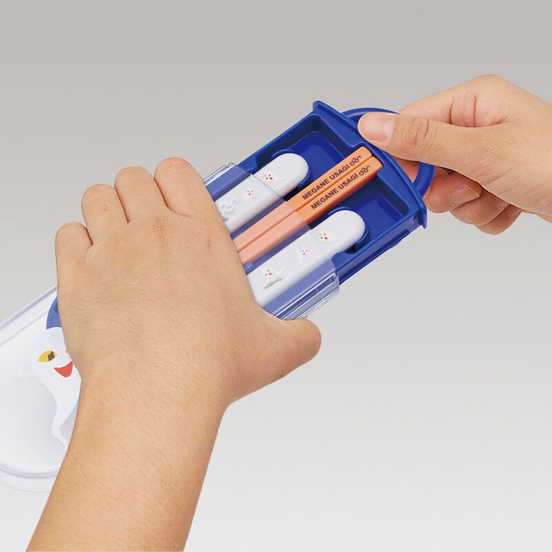 子供用 抗菌 お弁当 トリオセット 開けやすいスライド式(箸、スプーン、フォークのセット) めがねうさぎ/TACC2AG_4973307638862