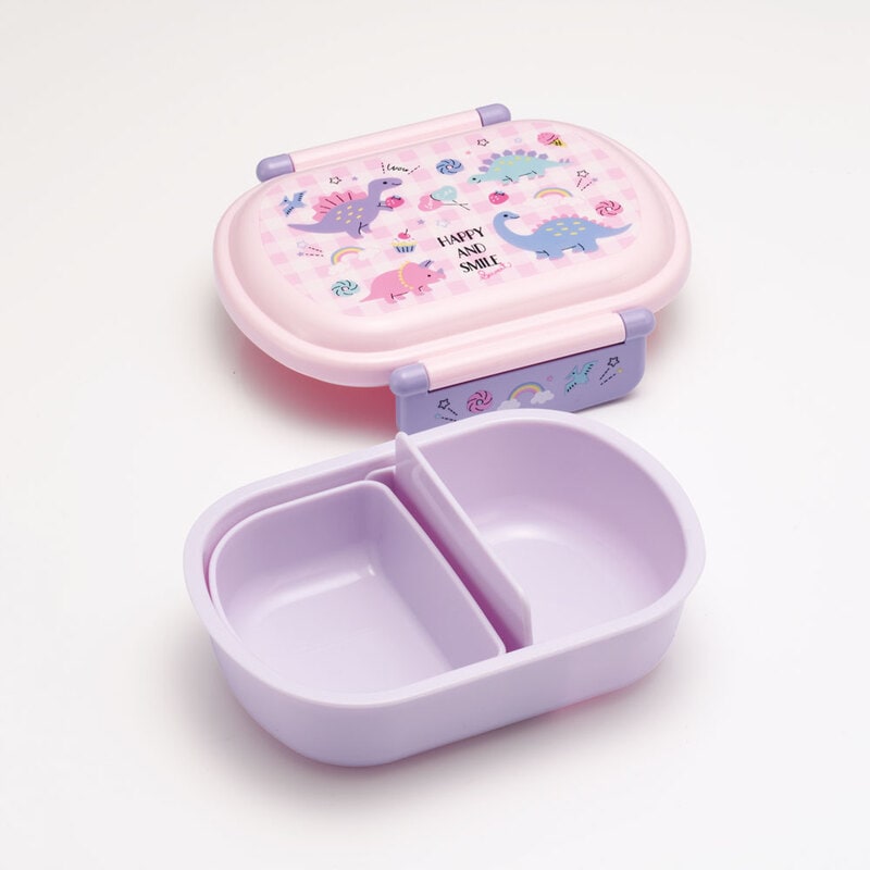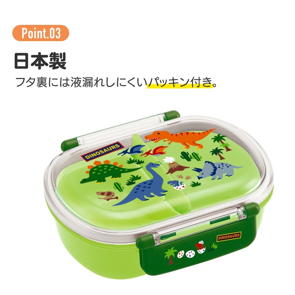 プラスチック 弁当箱 ランチボックス ドーム型フタ 仕切り 中子 パッキン 止具 名前シール付 抗菌加工 食洗機対応 電子レンジ対応 日本製 ハッピー&スマイル 恐竜 ダイナソー 女の子 女子
