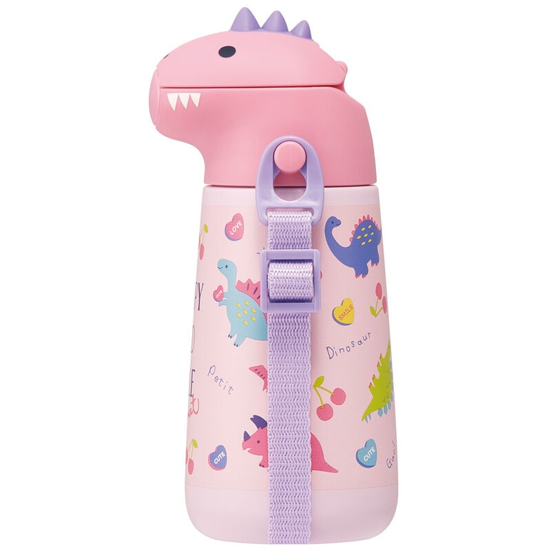 ステンレス 水筒 真空二層構造 保冷専用 ストロー ショルダーベルト 肩紐付き ワンプッシュオープン 子供用 キッズ ハッピー&スマイル 恐竜 ダイナソー 女の子 女子
