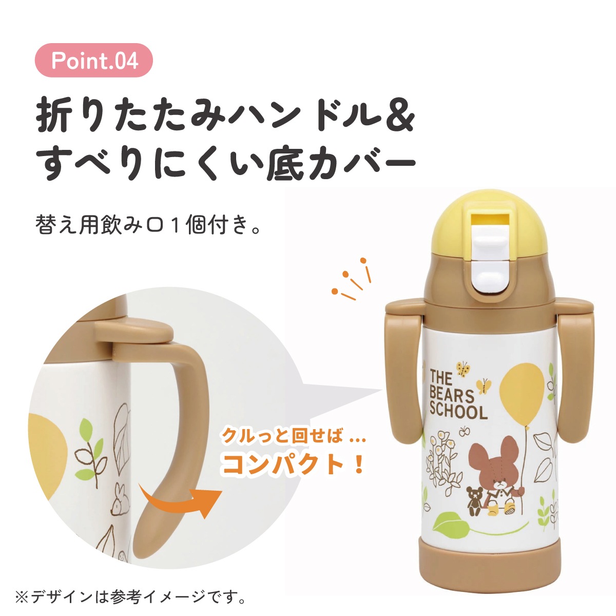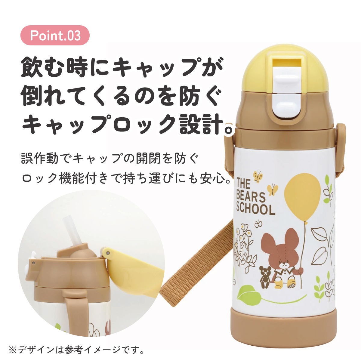 ステンレス 水筒 ボトル 真空二層構造 保冷専用 シリコンストロー 折りたためるハンドル ショルダーベルト ワンプッシュオープン ベビー 子供用 くまのがっこう クマの学校 男の子 女の子 女子