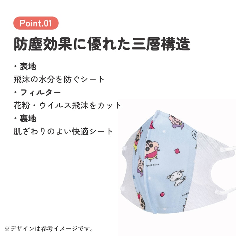 不織布 マスク 三層構造 平ゴム 子供用 キッズ 4歳以上 99%カット クレヨンしんちゃん クレしん 男の子 女の子