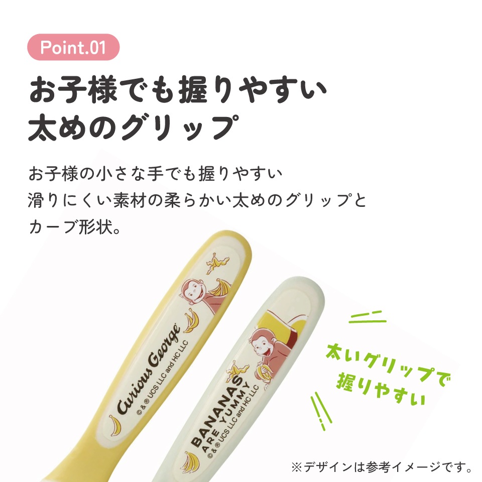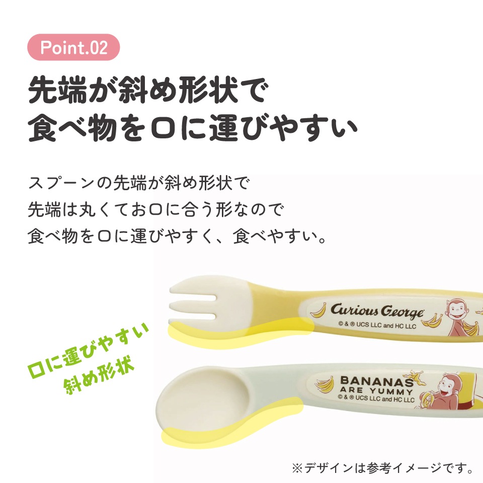 カトラリーセット スプーン フォーク カーブ形状 先端斜め形状 ベビー おさるのジョージ ひとまねこざる 男の子 女の子