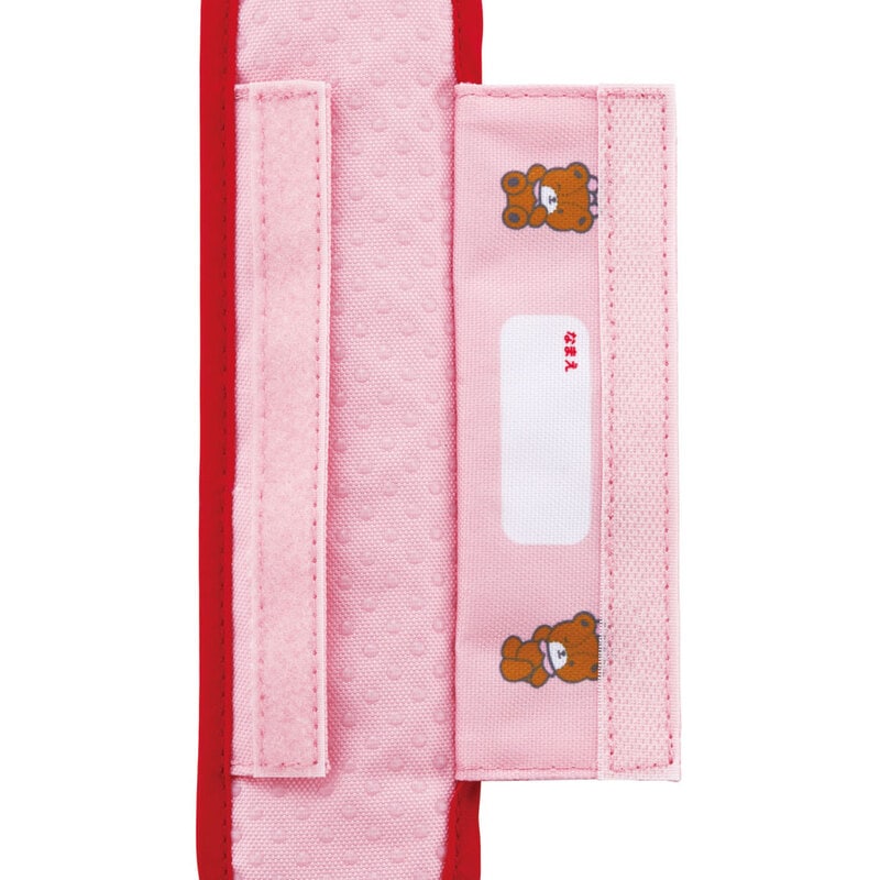 面ファスナーで付け外しが簡単で、内側には名前を書くスペースもあります。