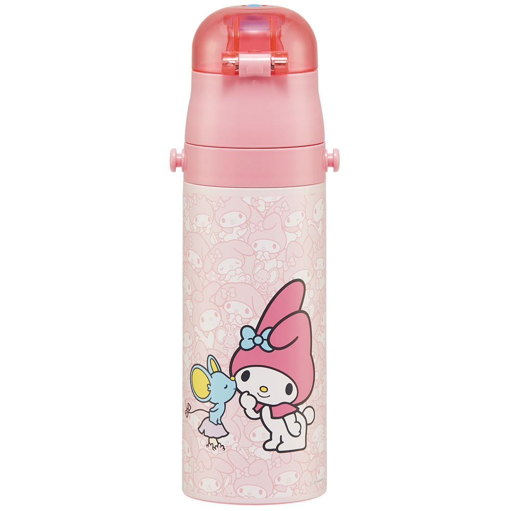 ステンレス 水筒 真空二層構造 保冷専用 直飲み ダイレクト ショルダーベルト 肩紐付き ワンプッシュオープン 子供用 キッズ マイメロディ マイメロ サンリオ 女の子 女子