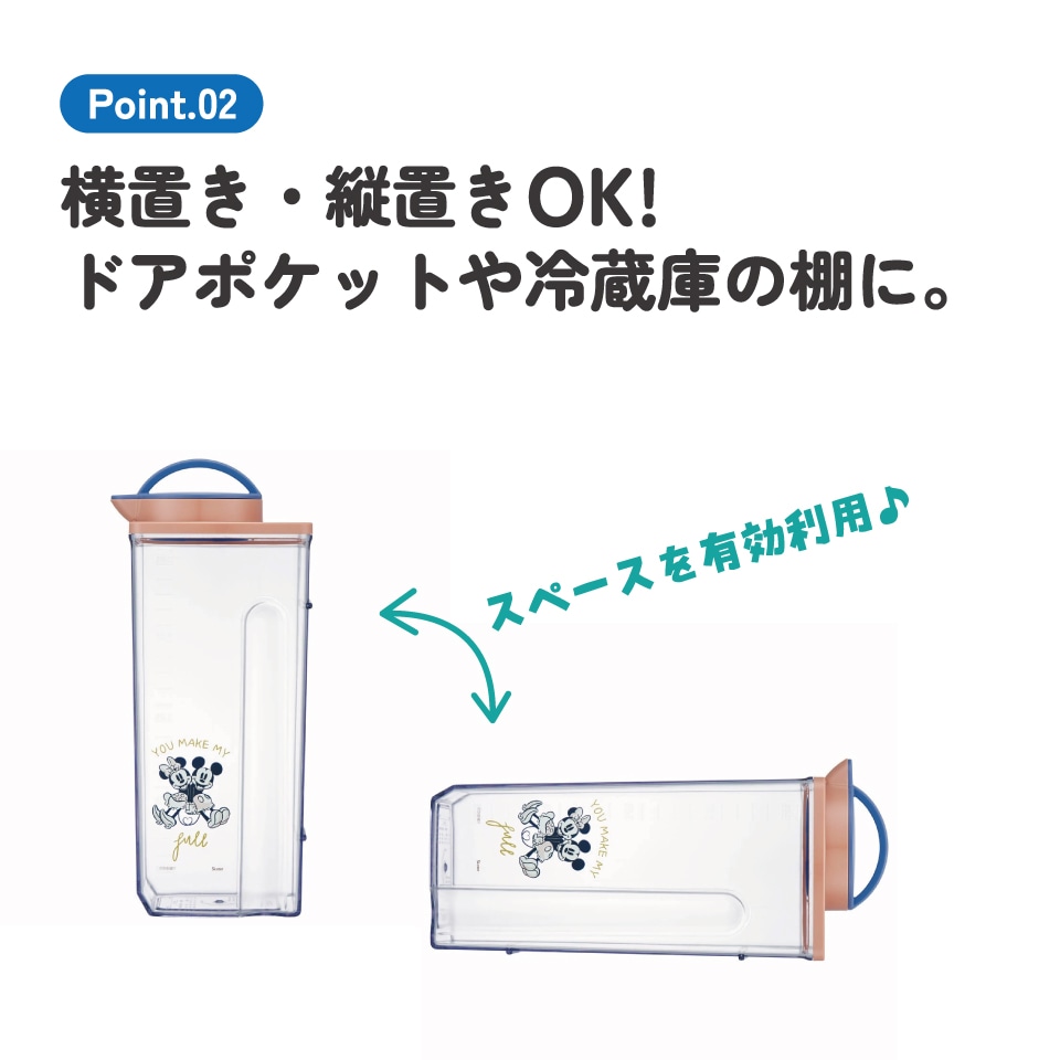 プラスチック 冷水筒 ピッチャー ハンドル付き パッキン付き ネジタイプ栓 目盛付き 横置き可 ミッキーマウス ミッキー Mickey 男の子 女の子