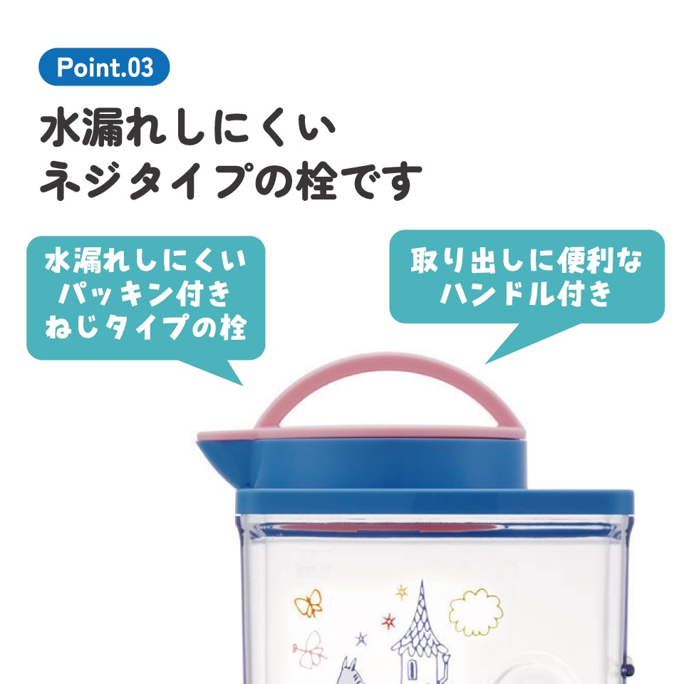 プラスチック 冷水筒 ピッチャー ハンドル付き パッキン付き ネジタイプ栓 目盛付き 横置き可 ムーミン Moomin リトル ミイ 女性 レディース