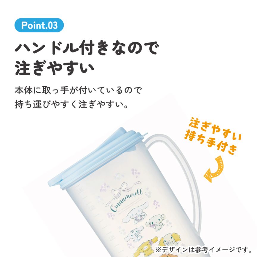 プラスチック 冷水筒 ピッチャー ハンドル付き ワンプッシュ開閉式 目盛付き シナモロール シナモン サンリオ 女の子 女子