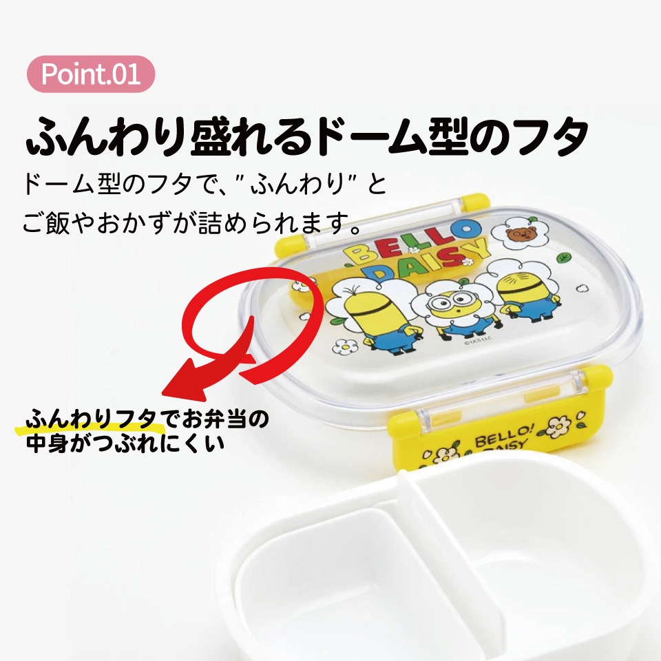 プラスチック 弁当箱 ランチボックス ドーム型フタ 仕切り 中子 パッキン 止具 名前シール付 抗菌加工 食洗機対応 電子レンジ対応 日本製 ミニオンズ ミニオン minion 男の子 女の子