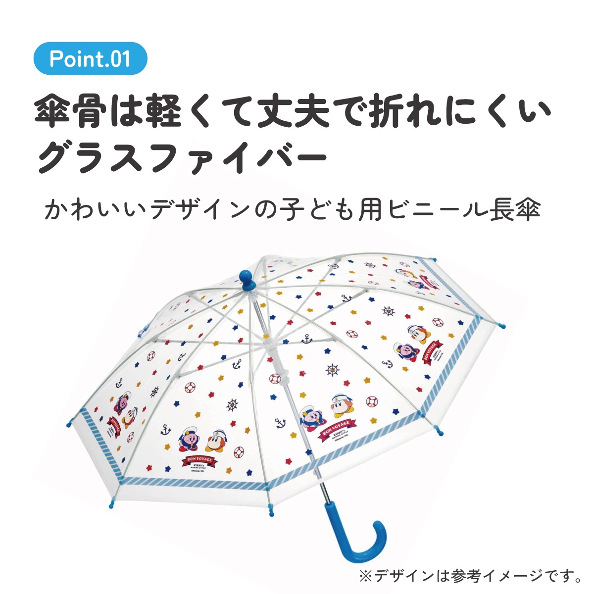 かわいいデザインの子ども用ビニール長傘。